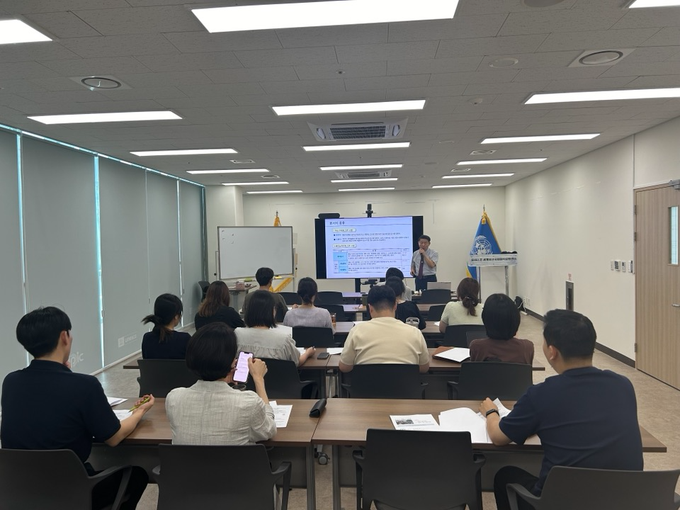On September 10th, WHIPIC held a training session for all employees on "Official Document Writing Techniques." The session was led by Jongmoon Han, head of McGrow Consulting, an official document and report writing expert. The training focused on the fundamental principles and methods of writing official documents, drafting techniques, and practical exercises with feedback.